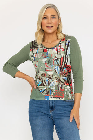 3/4 Length Sleeve Green Printed Top by Kalisson.