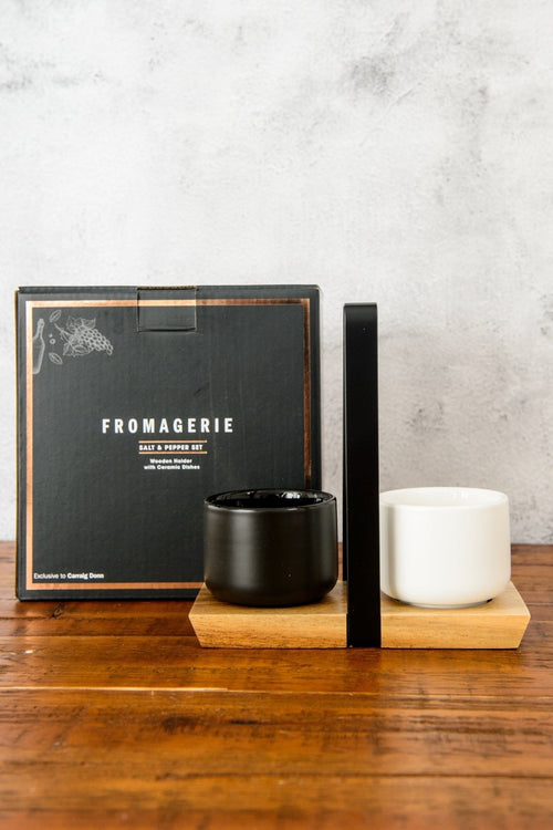Wood Salt And Pepper Set by Fromagerie. This set adds a rustic touch to your dining table while the classic design brings a touch of elegance to your dining experience.