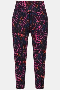 Ankle length sports leggings in pink and black by Ulla Popken.