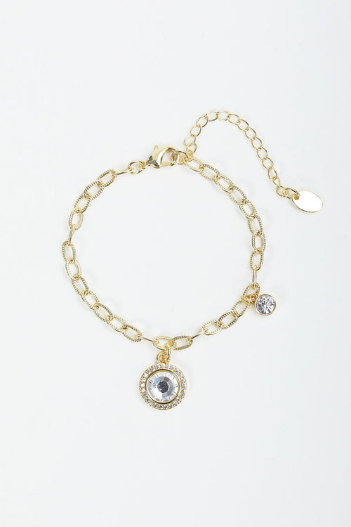 April Birthstone Charm Bracelet by Cherish Jewellery. This clear gemstone gold charm bracelet is thought to provide the wearer with better relationships and an increase in inner strength. Adorned with an additional clear stone charm, this ladies gold bracelet will make a meaningful birthday present.