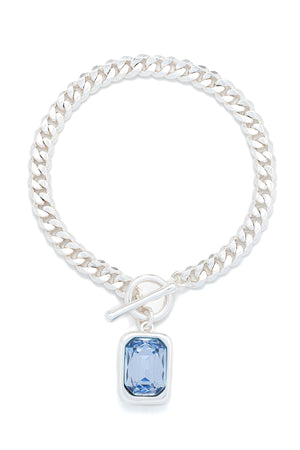 Ariya Sky Blue Bracelet by Knight & Day. Contemporary style sky blue drop bracelet with curb chain & ring and toggle fastening.