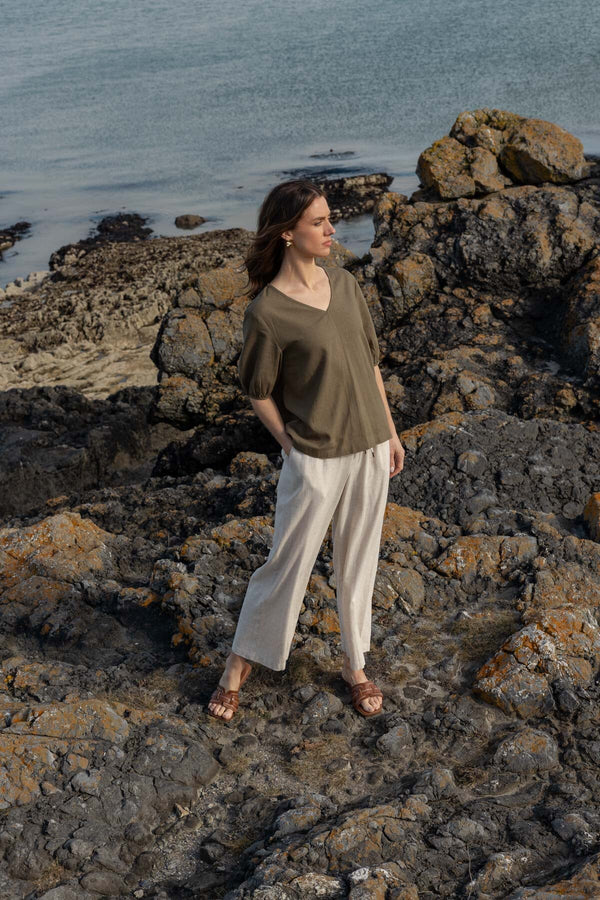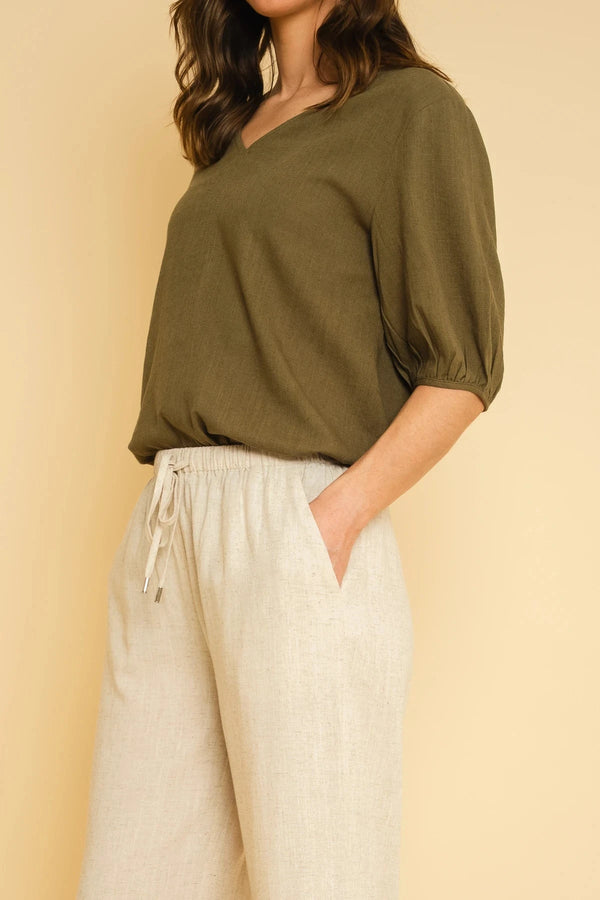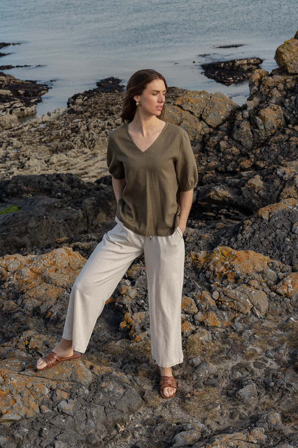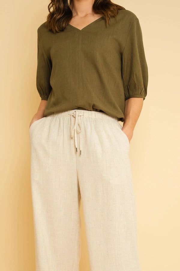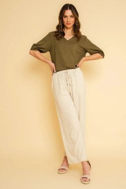 The Beige Linen Blend Wide Leg Trousers by Rowen Avenue is a summer essential. Lightweight, breathable, and elegant, these comfy trousers keep you cool and stylish all season.