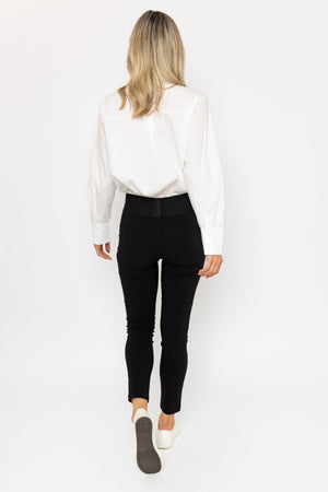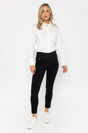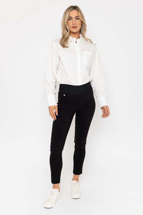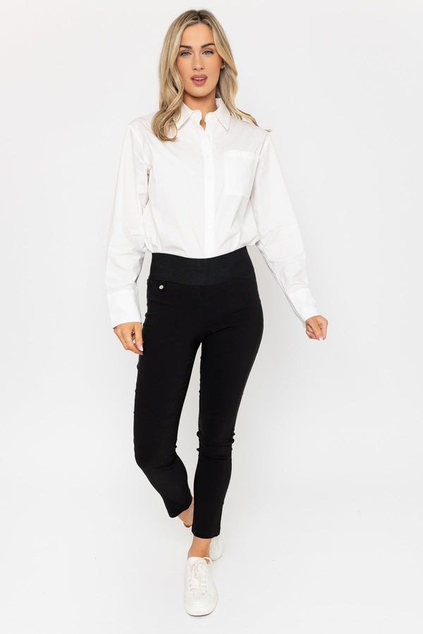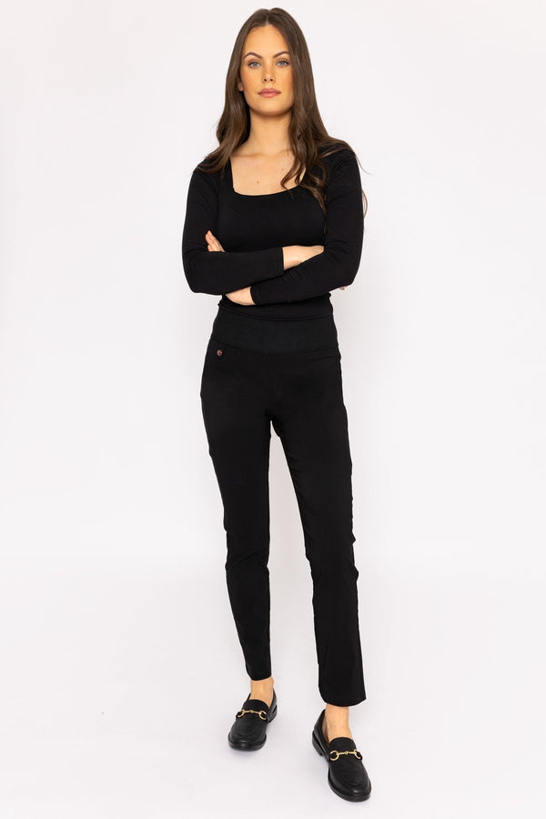 Bestseller straight leg trousers in black by Kelly & Grace Weekend. Made from bengaline fabric, these pants offer a comfortable and flattering fit. With a classic black color, they can easily be dressed up or down for any occasion.