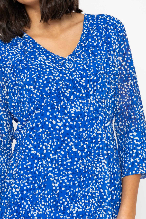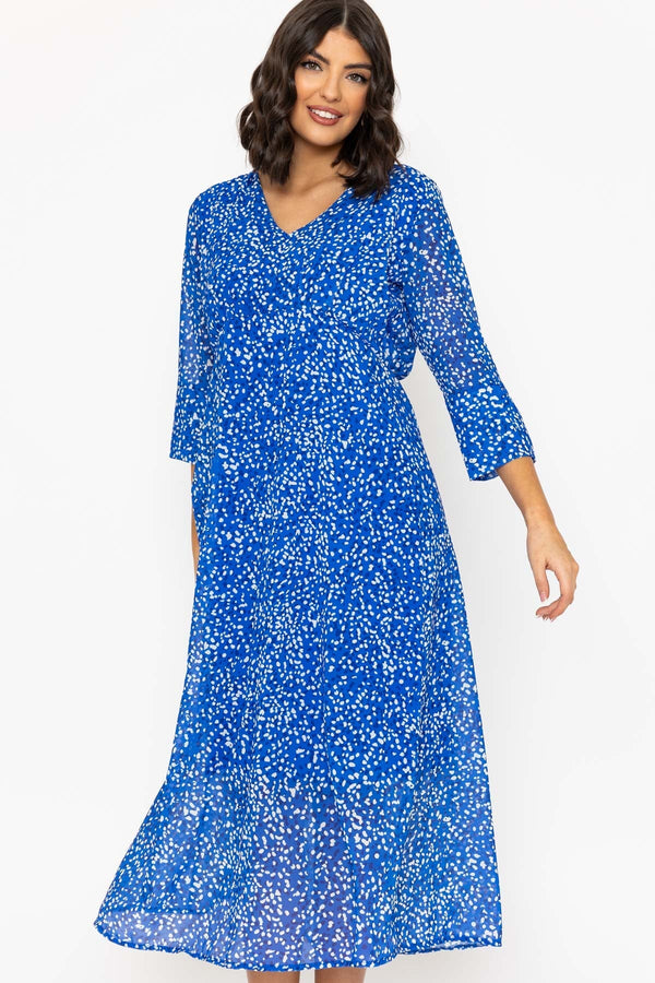 Blue Polka Dot Print 3/4 Sleeve Kerry Midi Dress