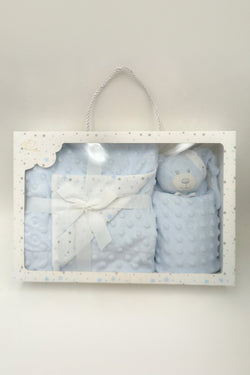 Blue Teddy Comforter & Blanket Gift Set