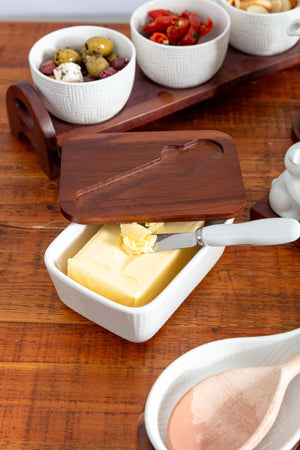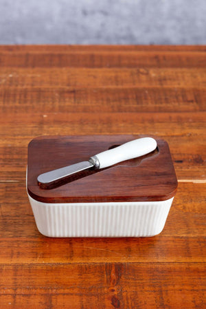 Butter Dish With Knife With Acacia Wood Lid