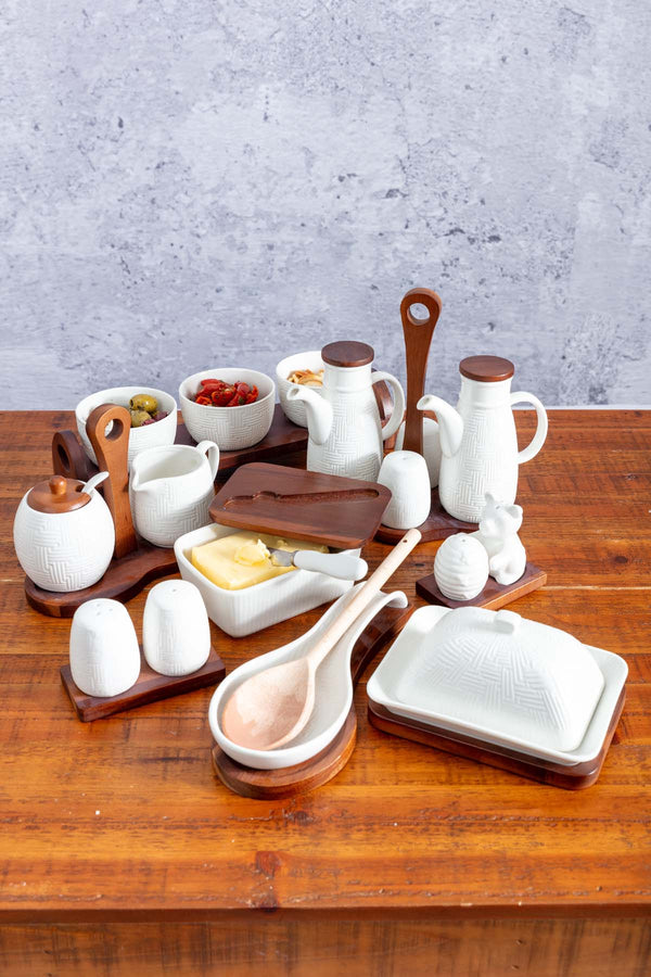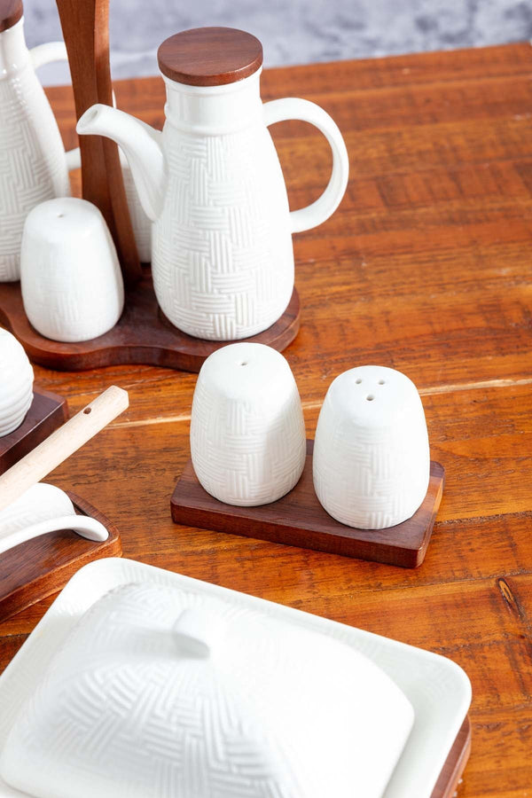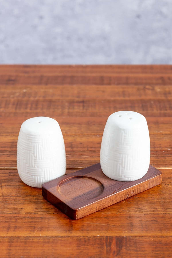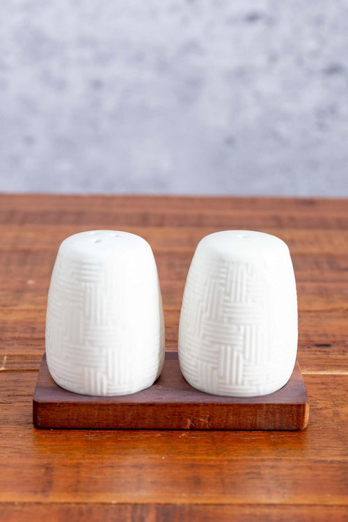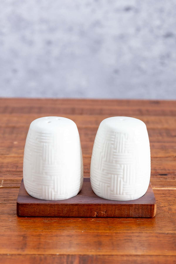Cable Knit Salt And Pepper With Acacia Wood Base