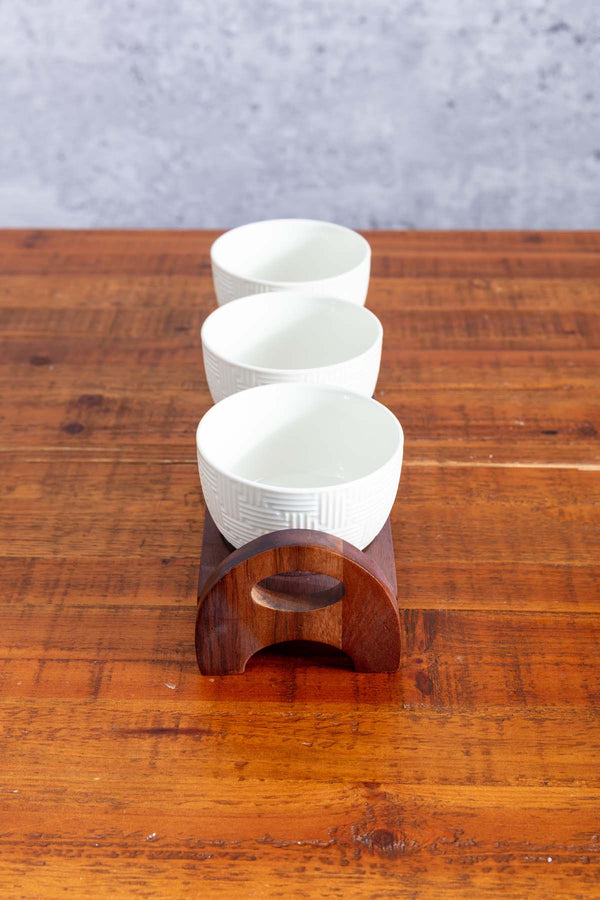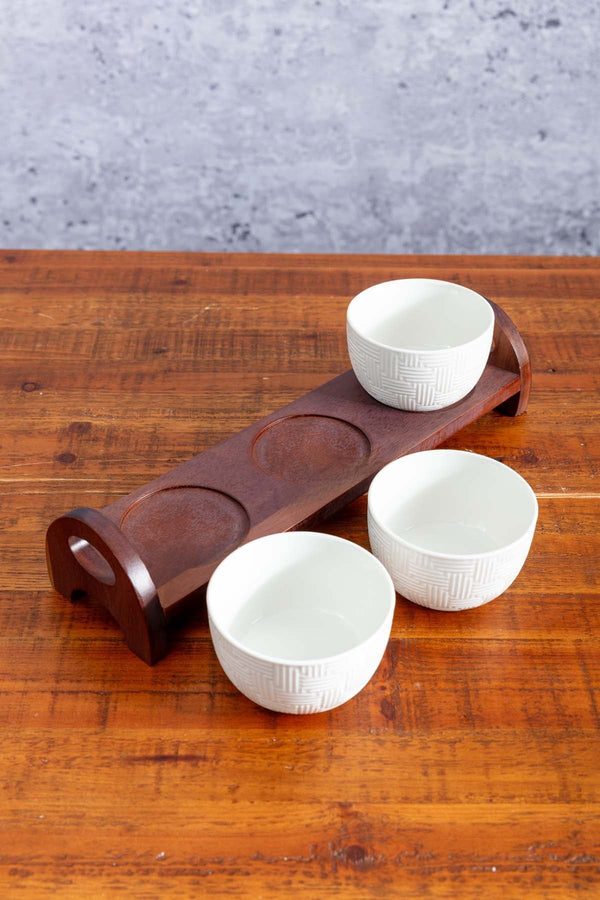 Cable Knit Triple Dish On Board With Acacia Wood Base