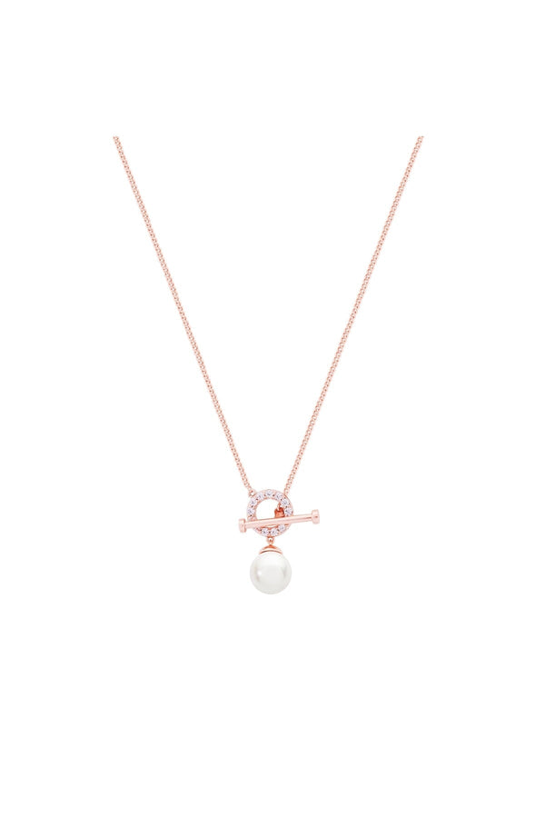 Pearl T-Bar Necklace in Rose Gold by Tipperary Crystal.