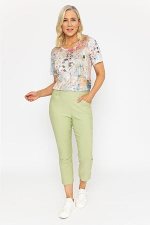 Cropped Bengaline Trousers In Sage Green by Voulez Vous. These ladies green trousers are the perfect option to dress up or down for any occasion. Versatile and stylish, they are a must-have Summer essential.