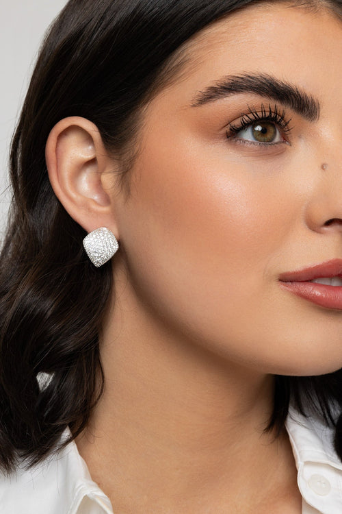 Crystal Encrusted Diamond Shape Earrings by Knight & Day. Sparkling diamond shape earrings heavily encrusted with CZ stones in micro pavé setting.