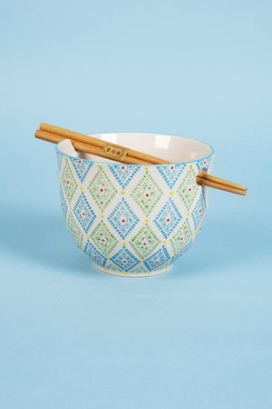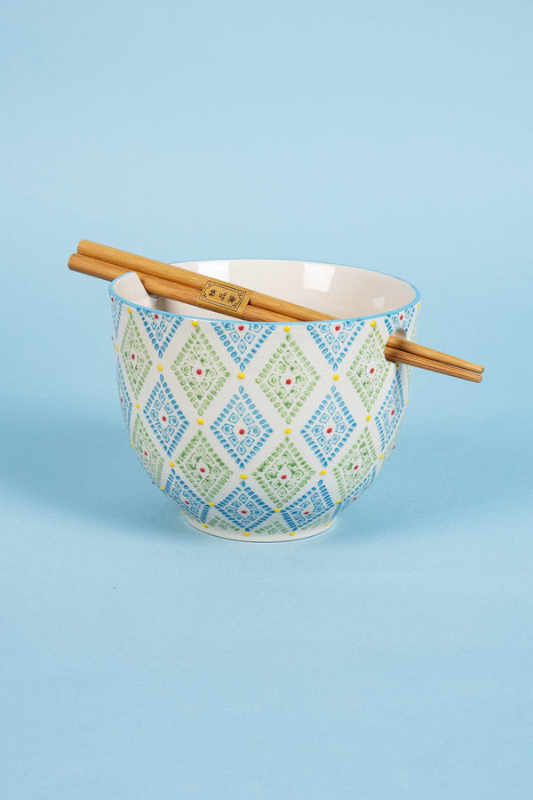 This modern rice bowl with chopsticks from the Eclectic tableware Collection exclusive to Carraig Donn Home combines oriental floral designs and colours which can be mixed and matched to create unique tableware. Dishwasher and microwave safe.