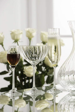 Erne Saucer Champagne Set of 4 by Galway Crystal is presented in a lovely gift box and is a perfect gift for that special occasion.
