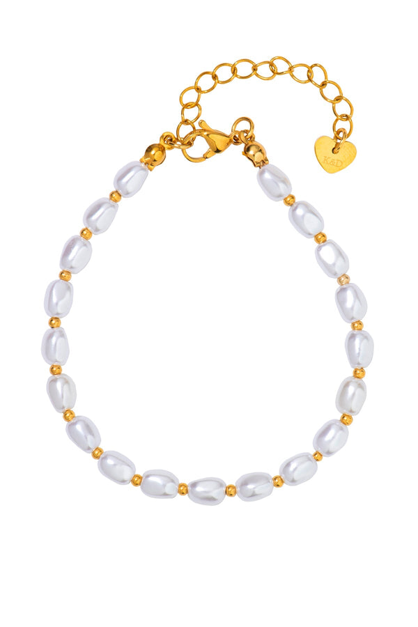 Faux Pearl Gold Bracelet by Knight & Day. Elegant single strand faux pearl bracelet.