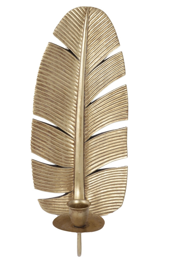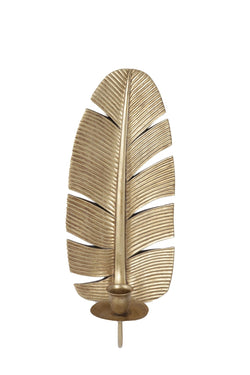 Gold Tone Leaf Wall Sconce by Carraig Donn Home. The gold tone finish adds a touch of glamour. It features a convenient hook for easy wall hanging and a beautiful display for dinner candle.
