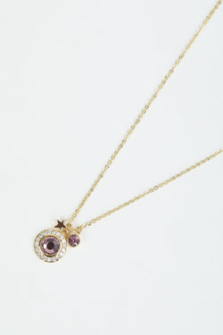 June Birthstone Charm Necklace by Cherish Jewellery. This stunning lilac purple gemstone gold necklace symbolises peace and spiritual enlightenment. Featuring a star and light purple stone charm, this ladies gold necklace will make a beautiful present.