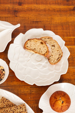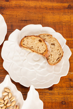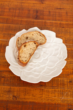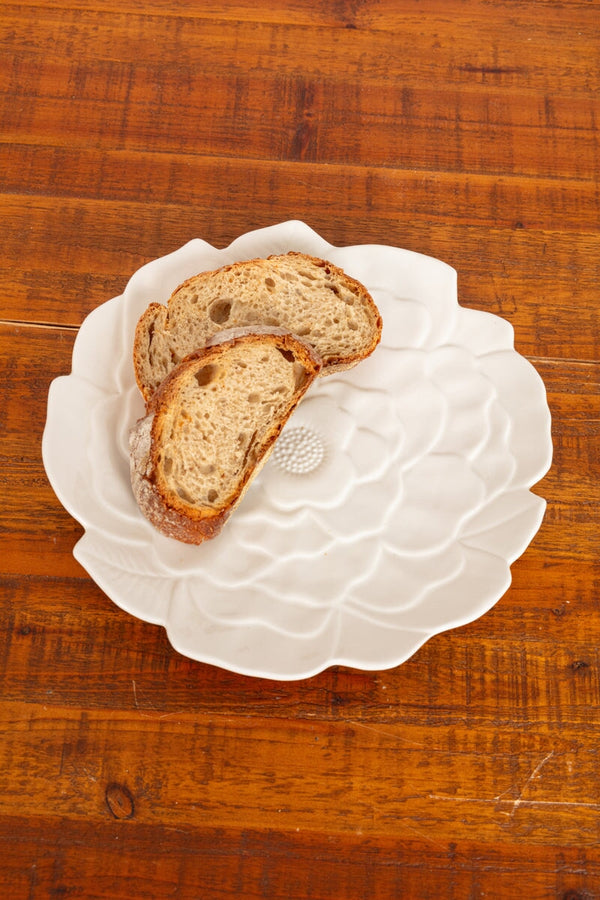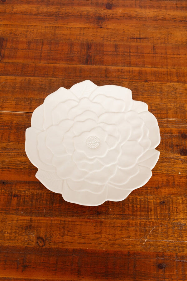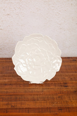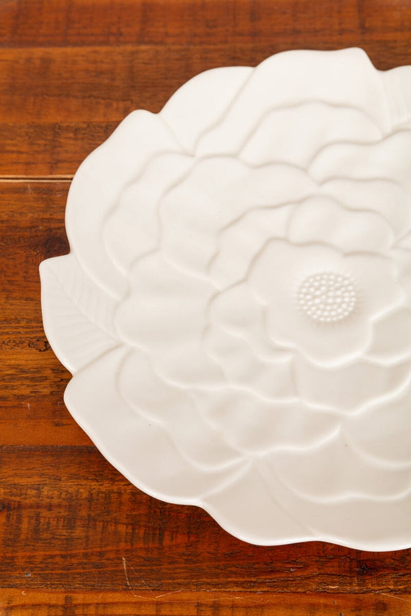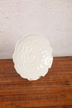 Large Ceramic Textured White Lotus Flower Plate by Carraig Donn Home. Perfect for entertaining at home, Its delicate design adds a touch of sophistication to your table setting.