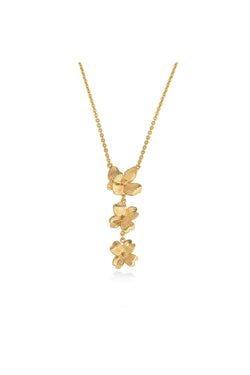 Le Fleur Collection Flower Drop Pendant Necklace by Tipperary Crystal. Made with gold plating and featuring a beautiful triple flower pendant, this necklace adds a touch of elegance to any outfit. Perfect for any occasion.