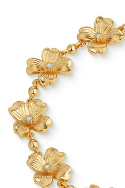 Le Fleur Collection Gold Flower Bracelet by Tipperary Crystal. Made with high-quality gold plating, each delicate flower detail is accented with sparkling clear CZ stones.