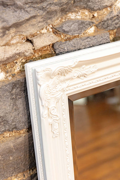 Cream painted wood wall mirror by Carraig Donn Home. Add a touch of vintage style to any space or dressing room with this classic mirror.