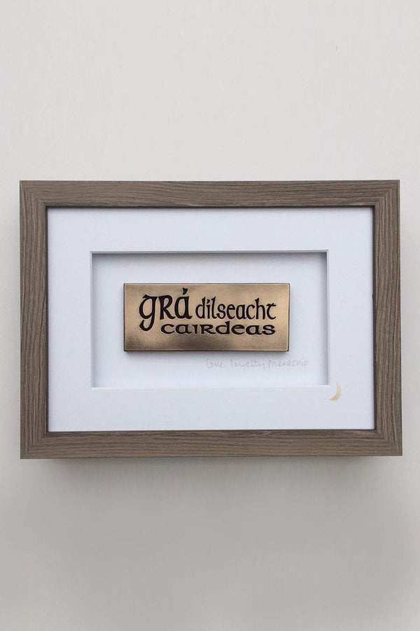 Wall art by Irish brand Wild Goose Studio with the saying Grá Dílseacht Cairdeas means Love Loyalty Friendship and these words are usually associated with the famous Claddagh Ring. A beautiful gift idea for engagement or weddings.