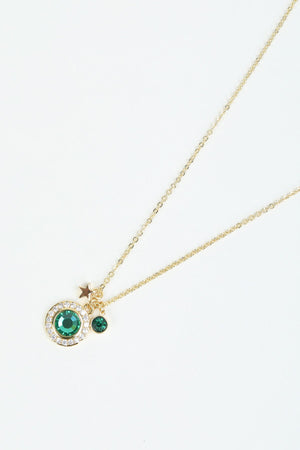 May Birthstone Charm Necklace by Cherish Jewellery. This stunning green gemstone gold necklace is believed to grant the owner foresight, good fortune and youth. Featuring a star and green stone charm, this ladies gold necklace will make a beautiful present.