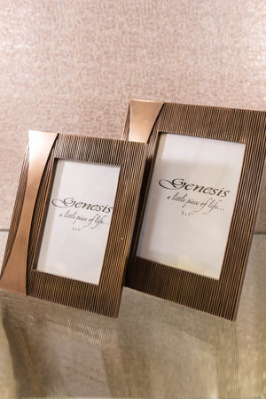 Beautifully crafted Genesis photo frame with elegant lined details made in cold cast bronze.