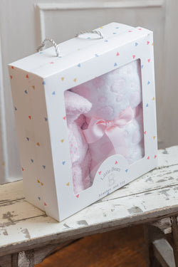 This Pink Bunny & Blanket Gift Set by Carraig Donn Home is the perfect gift for any new baby. Made with a soft pink fabric, this set includes a cuddly teddy bear and a cosy blanket for ultimate comfort. Presented in a beautiful box.