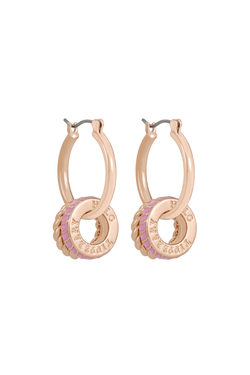 Pink Halo Small Rose Gold Hoop Earrings by Tipperary Crystal Jewellery. Inspired by warm colors reflecting on the sky. Rose gold finish with shades of pink crystals and enamel are reflected in all designs.