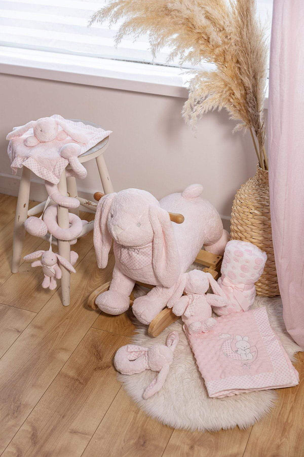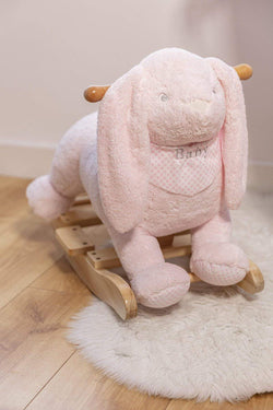This sturdy wooden Pink Rocking Bunny by Carraig Donn Home will make a lovely addition to any baby decor, a perfect gift for a new arrival.