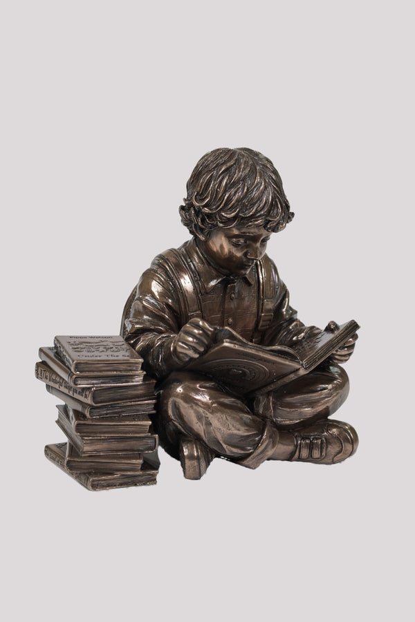 The Reading Time Boy is the perfect addition to any book lover's collection. This charming ornament showcases a boy engrossed in his book, capturing the joy of reading. It's a must-have for any bookshelf or desk.