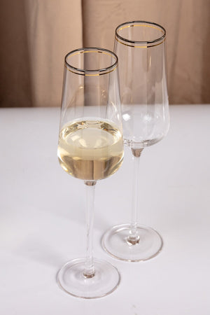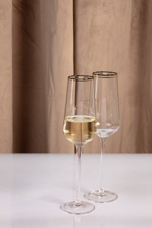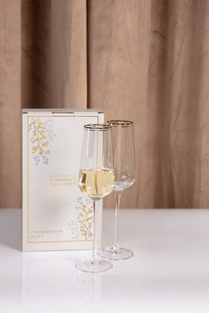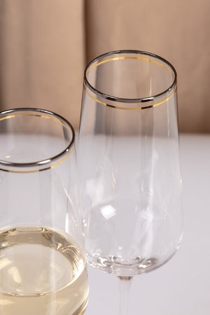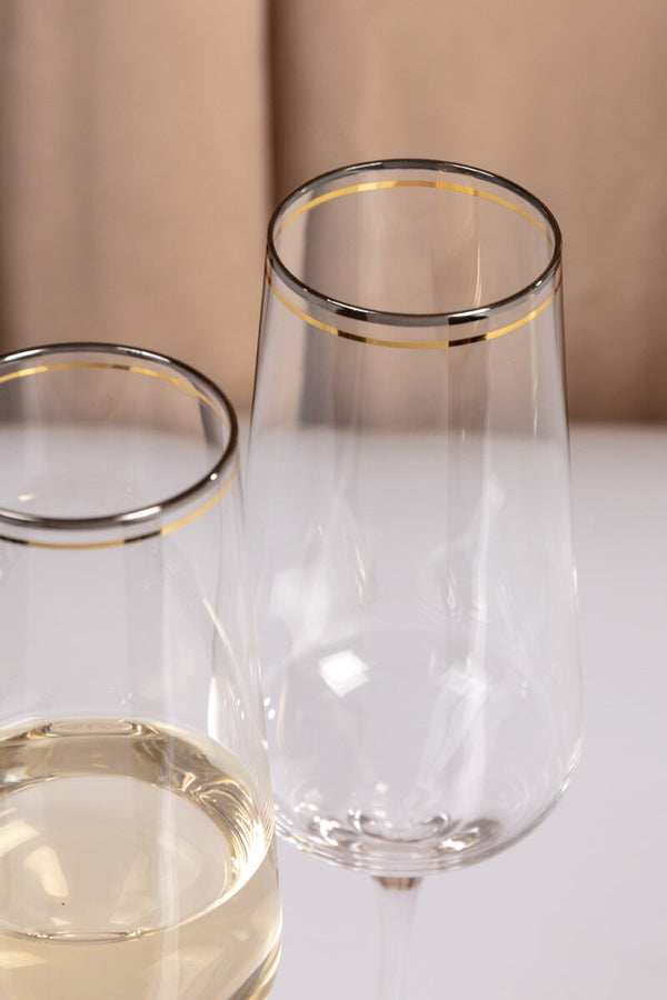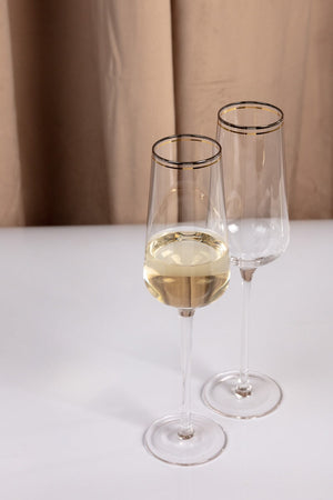 Set Of 2 Champagne Flute with Silver & Gold Rim