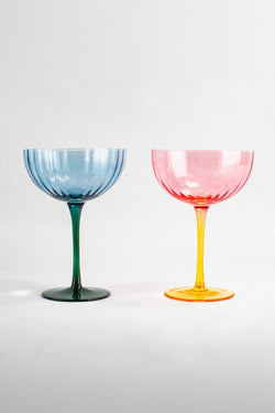 This set of 2 Eclectic Ripple Champagne Saucers by Eclectic are a vibrant addition to any occasion. Featuring a colourful 2-tone design, these glasses add a touch of spring to your table setting.