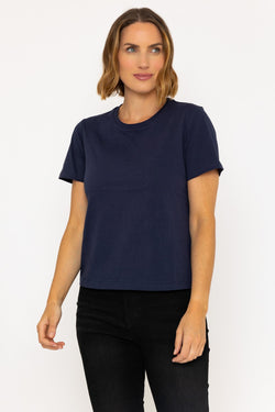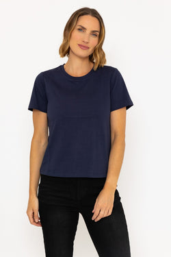 The Short Sleeve Super Soft Round Neck Tee in Navy offers a comfortable and flattering fit. Its round neck design is perfect for everyday wear, while its soft fabric makes it the ideal choice for any casual or lounge outfit.