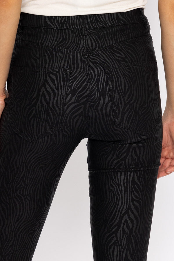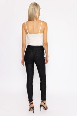 Skinny coated pants with a high-rise waistline, five pockets, belt loops, and a button and zipper closure by Vero Moda.
