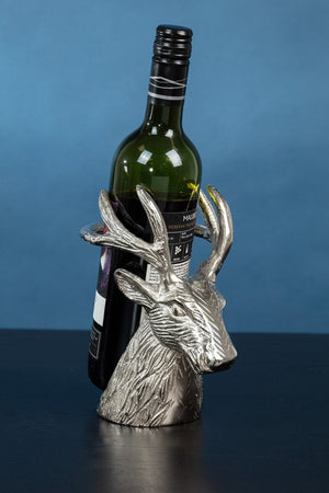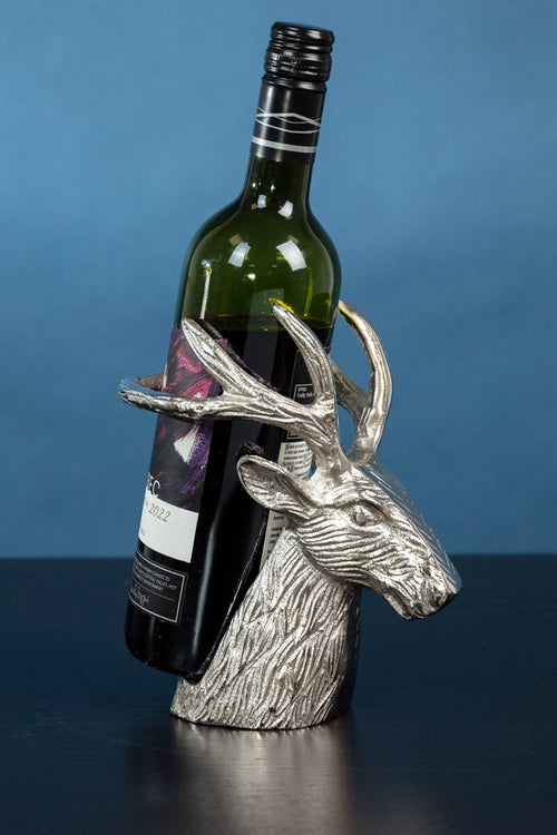 Silver stag head design wine bottle holder from the Atticus & Stone collection at Carraig Donn. A stunning table centre piece.