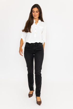 Straight Leg Charcoal Jeans by Kalisson. Versatile and stylish, these jeans can be dressed up or down for any occasion. These ladies jeans will be your autumn and winter staple.