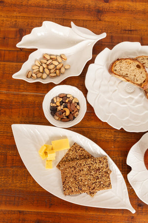White Ceramic Textured Leaf Platter
