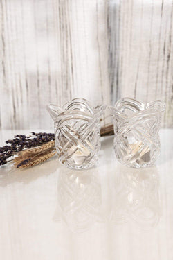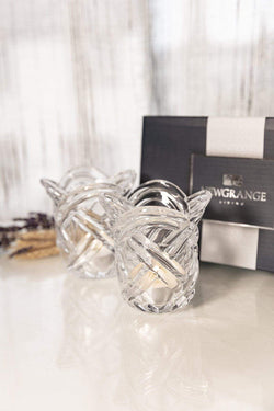 Woven glass tea light candle holders by Newgrange presented in a Newgrange gift box.